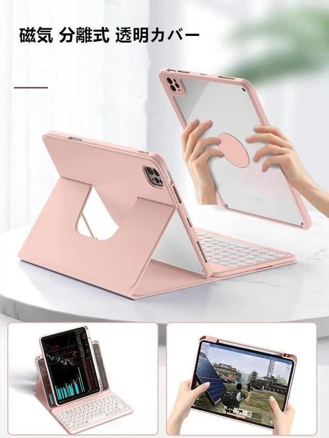 • Detachable Magnetic Keyboard with MouseThe magnetic design makes it easier to disassemble/install, and the position of the keyboard can be adjusted at will. The lovely round keyboard is comfortable to operate and has a stable structure.