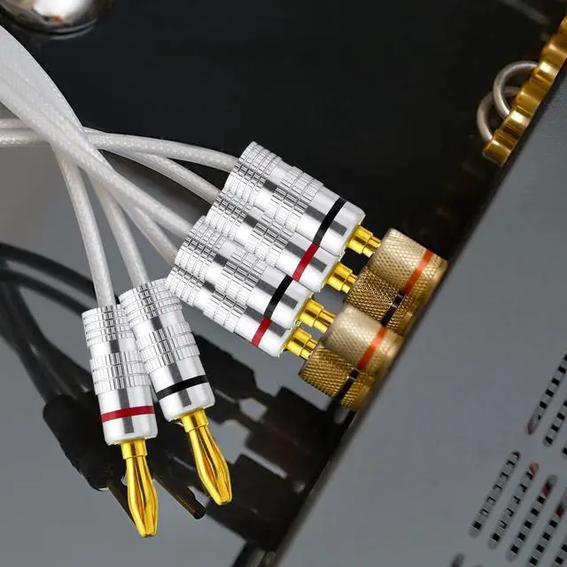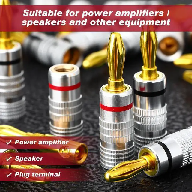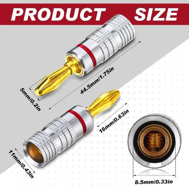 design: The speaker wire connector is designed with an aluminum shell, offering you double anti interference, anti oxidation, and wear resistant properties. Its robust and sturdy structure a prolonged lifespan, and justifies its worth in your sound systemGold plated connectors: These banana clips speaker are gold plated, ensuring excellent sound quality and connection strength. Additionally, they are color coded in red and black. You will not get confused about polarity identificationSpecifications: