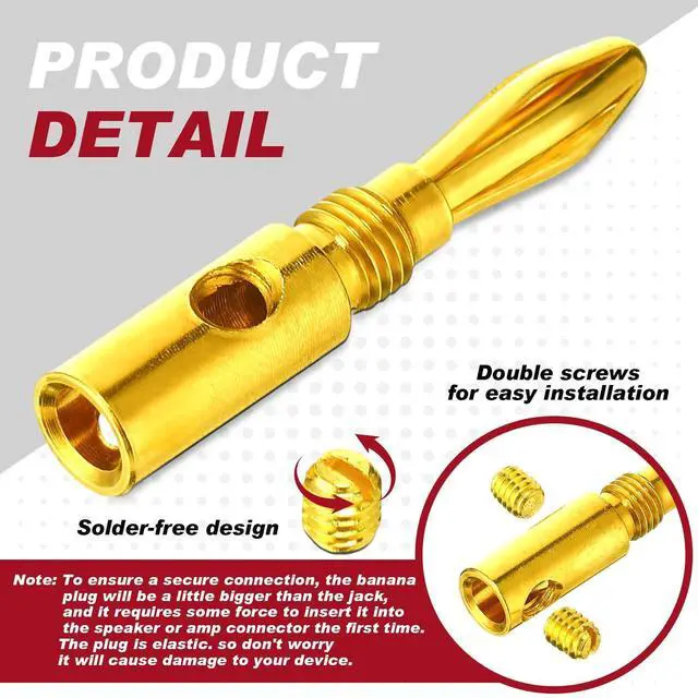 Speaker banana plugsNotes: Manual measurement, please allow slight errors on size. The color may exist a slight difference due to different screen displays.