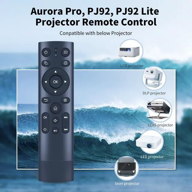 Compatibility WDZP New Projector Remote Control fit for NexiGo Aurora Pro, PJ92, PJ92 Lite Ultra Short Throw 4K Tri-Color Laser Projectors ^^ Two Pairing Methods1There are infrared (IR) sensors at the front center of the projector and on the remote. If you choose to use this method to control the projector, it has a maximum range of 26 feet. 2 Ensure that the remote is within a few feet of the front of the projector before pairing. Press and hold the Return and Menu buttons simultaneously for at least 10s. If the pairing is successful, the screen will show "Remote connected".