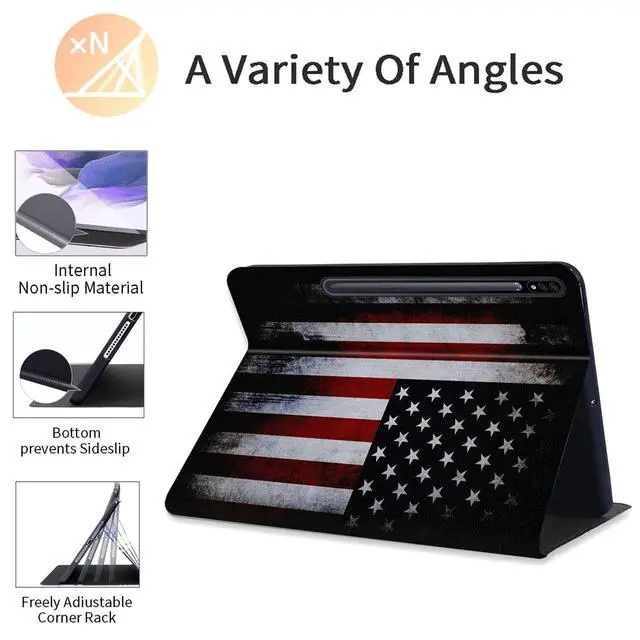 Weight: 4.8 ounces Why Choose The Tablet Case Cover? 1. The case is ONLY designed for Samsung Galaxy Tab S7 FE 5G 12.4 Model SM-T730/T733/T736/T738 2021 Release & Galaxy Tab S7+ / S7 Plus 12.4 Model SM-T970/T975/T976/T978 2020 Release Tablet. for Samsung Galaxy Tab S8+/S8 Plus 12.4 inch (Model SM-X800/X806) 2022 Release. 2. A range of different striking pattern design available for you to choose. Make your tablet unique and personality. 3. Easy installation and removal. 4. Ultra slim and lightweight, Premium synthetic PU Leather + TPU hard back shell + soft microfiber interior, soft and durable. 5. Multiple angle standing, especially when playing games or watching TV, it can meet our different visual angles and can protect vision. 6. Precise cutouts, full access to all features without removing case, scratch-resistant, shockproof, full protection of the fuselage.