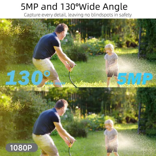 Experience peace of mind immediately: 5MP Ultra HD resolution, 130 wide-angle view, color night vision up to 33FT, AI motion detection with customizable activity zones, motion-activated spotlight, optional siren alarm, two-way audio, solar charging with 5200mAh battery, SD/Cloud storage, and IP65 waterproof durability. Perfect outdoor security camera for driveways, yards, entrances, and garages. ^^ Reliable Solar PowerWorks Even During Outages Solar camera outdoor wireless with continuous 5200mAh battery support. Harness solar energy to keep your wireless camera running reliably every day, reducing manual charging. Continues to operate during power outages, ensuring uninterrupted monitoring for long-term outdoor protection. ^^ AI Motion DetectionInstant Smart AlertsAdvanced security camera with customizable activity zones. Smart AI motion detection sends real-time notifications to your phone. Focus on the areas that matter most while reducing false alerts. Motion-triggered recording captures all important events automatically. ^^ Spotlight & SirenActive Intruder DeterrenceMotion-activated light and optional siren alarm. Illuminates detected motion instantly to startle intruders. Optional siren enhances deterrence. Turns your Wireless Outdoor Security Camera into a proactive defense tool before incidents occur. ^^ Two-Way Audio Real-Time CommunicationBuilt-in microphone & speaker for app-based interaction.