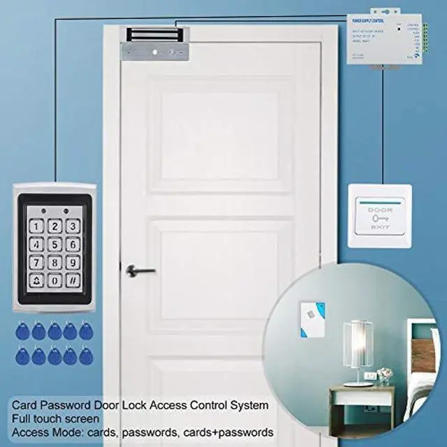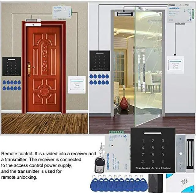 The door lock access control kit can open the door using proximity cards, passwords, or the hybrid.