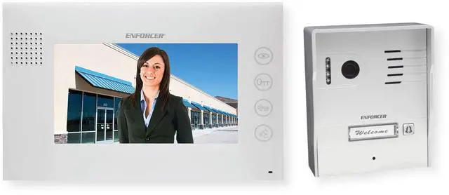 Answer your front door from another room in your house with the Seco-Larm Enforcer Hands-Free Video Phone Kit. Similar to a home intercom system, this hands-free video phone provides remote, two-way communication between you and visitors at your front door using a hands-free monitor and camera. You no longer need to walk over to your front door to answer it; just press a button on the monitor to talk with a visitor, or even unlock your door. Simple 2-wire connection allows communication with visitors and the unlocking of a door via the monitor Large 7" Color TFT display with Monitor, E-Lock, Relay Unlock, and Talk buttons Camera with 1/3-inch CMOS sensor, 2.1 mm lens, and 700 TV lines Built-in IR LEDs in the camera allow nighttime operation Can be expanded by connecting up to 2 additional monitors and 1 cameraThe camera and monitor have a simple 2-wire connection and operate with each other within a 230-foot (70 meters) range.