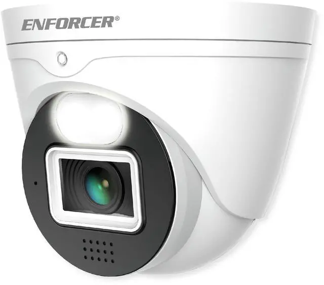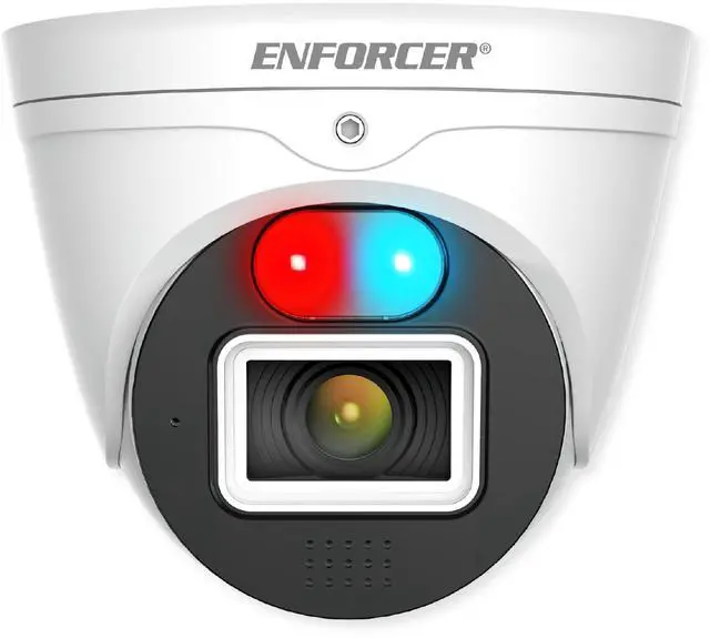 Seco-Larm EV-N2806-2W4D Enforcer Ultra-Low-Light 8MP Active Deterrence Turret Camera, 1/ 1.8" CMOS Sensor, 3840x2160 Resolution at 30fps, IP67 Weatherproof, Progressive Scan, 12VDC/PoE, 3DNR The ENFORCER Ultra-Low-Light Active Deterrence Turret Camera combines 4K-resolution with Active Deterrence. Using a Sony CMOS sensor and ultra-low-light technology, the camera adjusts color information to provide clear images even in dark environments. With Active Deterrence the camera uses AI to distinguish between environmental issues and actual threats and uses red/blue LEDs and sound to warn off intruders, for significantly increased security.
