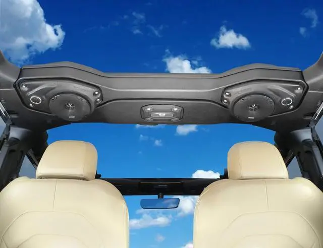 Model 28-JLJT-E: JLJT-Pods enclosures hardware. Speakers not included. For standard factory audio systems Plug and play factory sound bar enhancement for your Jeep JL/JT Wrangler and no need to remove or cut up your sound bar for this upgrade! Select Increments JLJT-Pods are compatible with all 2018-2023 Wrangler JL & JL Unlimited models, and all 2020-2023 JT Gladiators. Standard audio systems upgrade to 6.5" or 6.75" two-way speakers while the premium Alpine systems upgrade to 6.5" or 6.75" Component Speakers that feature separate tweeters. JLJT-Pods have a textured finish to match your sound bar and install easily just remove the factory grilles and speakers, then attach the JLJT-Pods by re-using the factory grille screws. The new, larger speakers in the JLJT-Pods will line up with the sound bar woofer holes so the magnets can drop through as needed with room to spare. The new speakers then access air space in the entire sound bar, as well as the new area created by the pods for stellar sound! Most 6.5" and 6.75" speakers are compatible and only some with fairly large magnets may not fit (max. mounting depth of about 2 5/8", max.