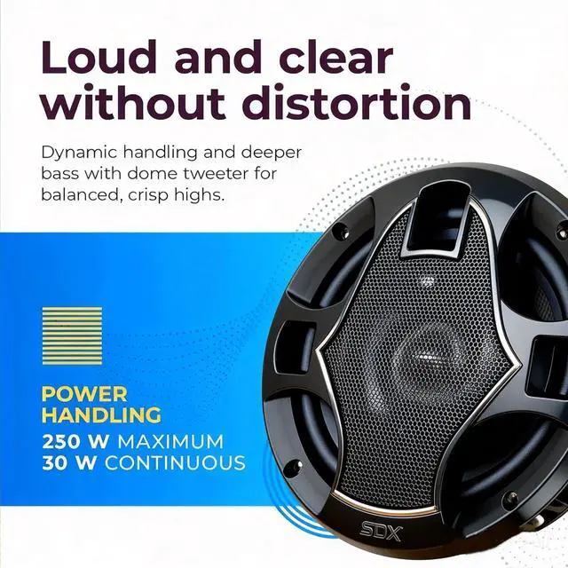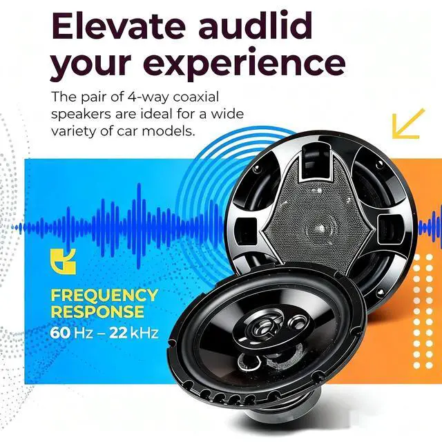 4-Way Coaxial Design - The innovative coaxial setup of these 5.25" car speakers integrates a woofer and tweeter for balanced, immersive sound, ensuring a full range of frequencies during your drive. ^^ Sensitivity - With an 88dB sensitivity rating, enjoy distortion-free music at higher volumes, ensuring a clear and loud audio experience with lower power inputs. ^^ Power Handling - Delivering 220W (25W nominal) with 4-ohm impedance, these car door speakers combine style and high-quality sound for a dynamic audio experience. ^^ Package--2 pcs Car Speakers, 5.25" diameter, these vehicle speakers seamlessly integrate into most car interiors, offering versatility without compromising performance.