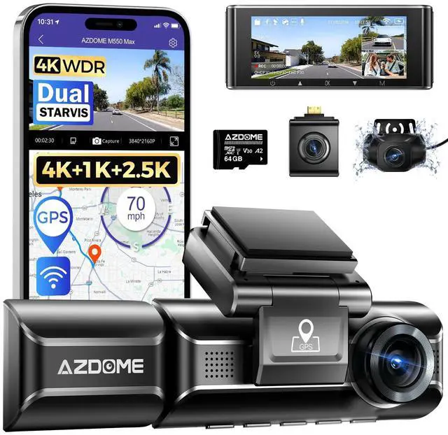 Recording Dash Cam: M550 Max's front camera supports up to 4K 3840*2160 resolution in all 1CH/2CH/3CH options, capturing crystal-clear footage on the road. With complete 150 front, cabin and rear views, the triple dashcam simultaneously records in 4K+1080P+ 2.5K resolution with 360 full-protection, making it an ideal companion for Uber drivers and family road trips. ^^ Dual STARVIS & WDR & 6