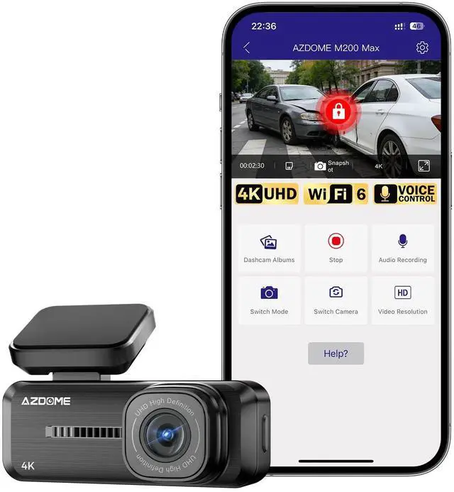 AZDOME App: WiFi dash cam integrates WiFi 6 technology to deliver 3x faster transfer speeds than 2.4G WiFi. Car dash cam downloads a 1-minute 4K video clip in just 30 seconds. Operate your 4k dash cam via the app to preview and save critical accident footage, and share it on social media or with insurance providers in one tap, without long waits.