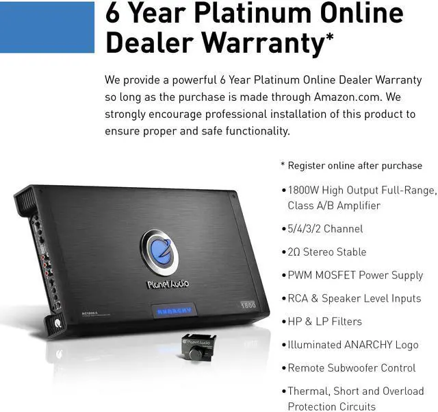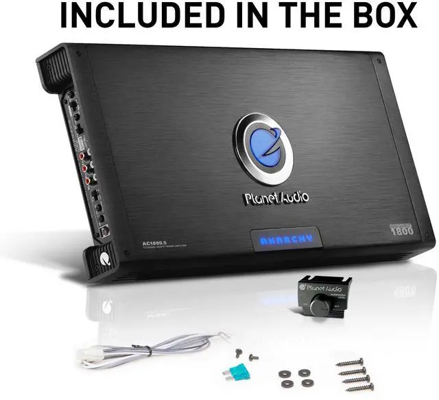 Planet Audio AC 1800.5 5 Channel Car Amplifier - 1800 High Output, High/Low Level Inputs, High/Low Pass Crossover, Full Range, Bass for Subwoofer