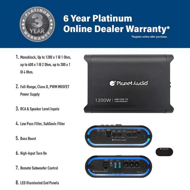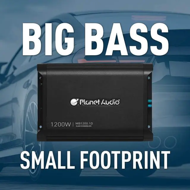 Planet Audio MB 1200.1D Class D Car Amplifier - 1200 Watts, 1 Ohm Stable, Digital, Monoblock, Mosfet Power Supply, Great for Subwoofers