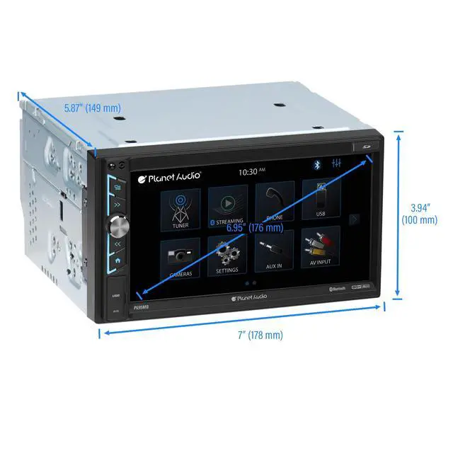 Planet Audio P695MB Multimedia Car Stereo - A-Link (Screen Mirroring), Bluetooth Audio and Calling, 6.95 Inch LCD Touchscreen, Double Din, USB, Micro SD, Aux Input, AM/FM Radio Receiver, No CD/DVD
