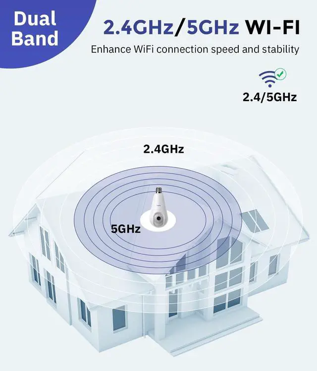 Band Connectivity: Enjoy uninterrupted real-time video streaming with the 2K 3MP lightbulb camera; dual-band Wi-Fi ensures strong signal and extended range for seamless indoor and outdoor surveillance ^^ Effortless Installation with
