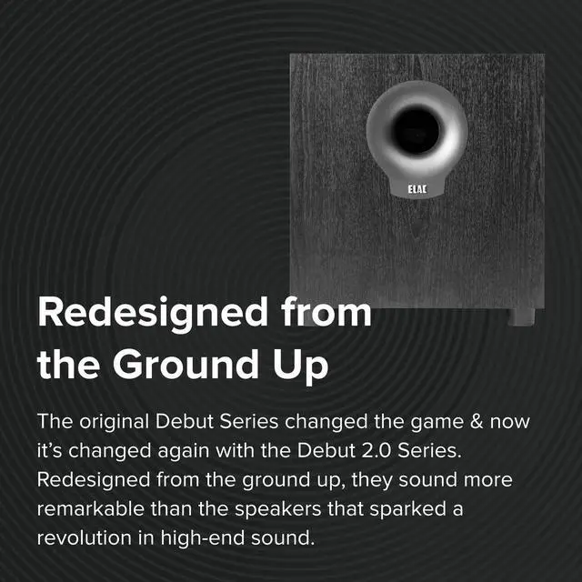 ^^ BRACED MDF CABINETS - The MDF cabinets are larger and internally braced for greater stiffness & strength, reducing cabinet vibrations. Plus, the compact design allows placement in almost any part of your room. ^^ REDESIGNED FROM THE GROUND UP - The original Debut Series changed the game & now its changed again with the Debut 2.0 Series. Redesigned from the ground up, they sound more remarkable than the speakers that sparked a revolution in high-end sound.