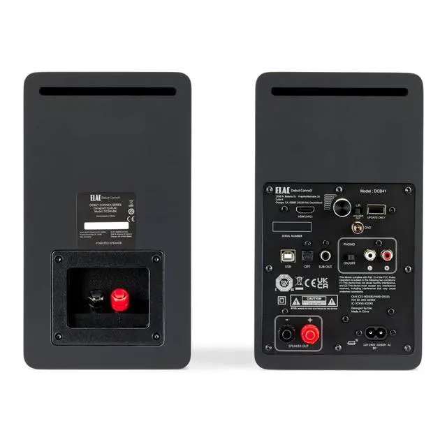 2 x 50 Watt Amplifier ^^ 3/4" Soft Dome Tweeter with 4.5" Woofer ^^ HDMI ARC, Phono, USB, Optical and Bluetooth Inputs ^^ Subwoofer Output ^^ HDMI Cable, Speaker Cable, Power Cable, and Remote Control Included