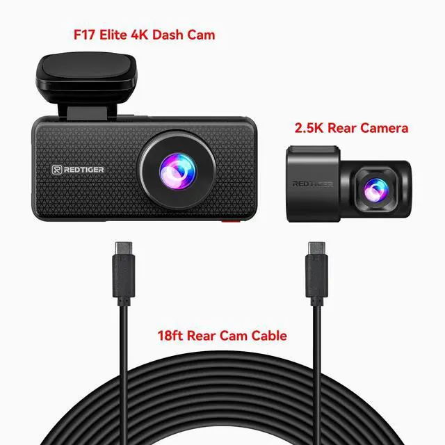 REDTIGER Original 2.5K Rear Camera and Dual USB C Rear Cam Cable for F17 Elite Dash Cam