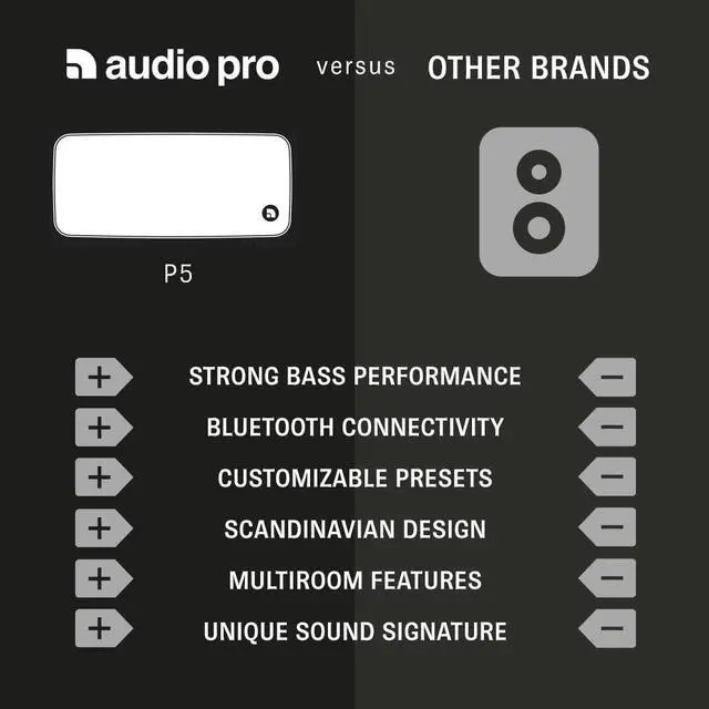 ^^ PERFECT TRAVEL COMPANION: The Audio Pro P5 portable speaker is the perfect travel companion. As a mini Bluetooth speaker designed to easily fit into a fully packed suitcase, you are able to listen to music throughout your whole trip. The slimline design will let you bring the speaker with you even in smaller handbags, or simply use the handy strap to carry it easily by your wrist.