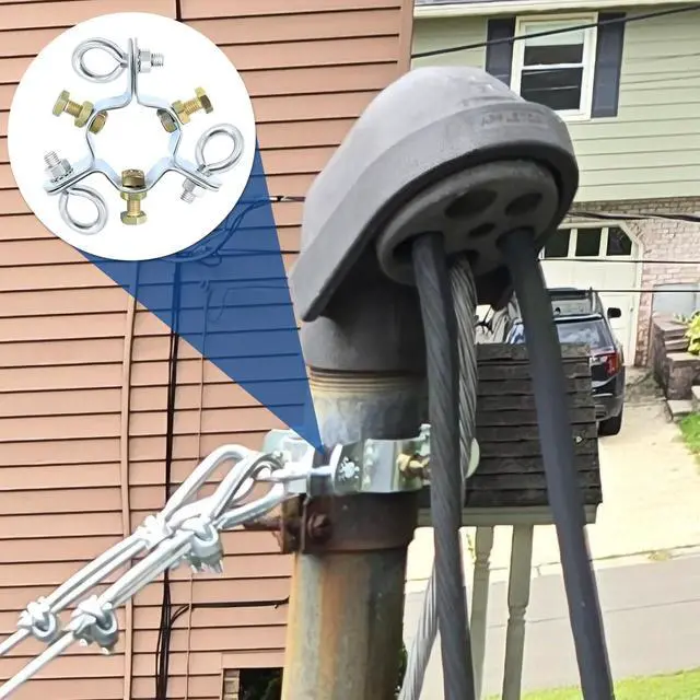^^ Versatile Attachment: Uses 3 screw eye bolts to attach guy wire back out bolts, accepting masts up to 1-1/4". For larger masts, simply loosen the eyebolts on the sides to expand the ring.