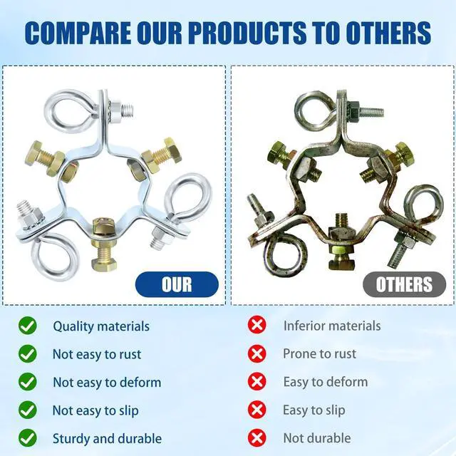 ^^ Adjustable Guy Ring: The three-way down guy ring securely fastens masts with tubing up to 2-1/4", providing a versatile and reliable solution for various mast sizes.