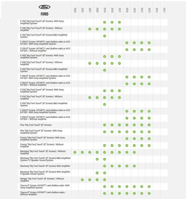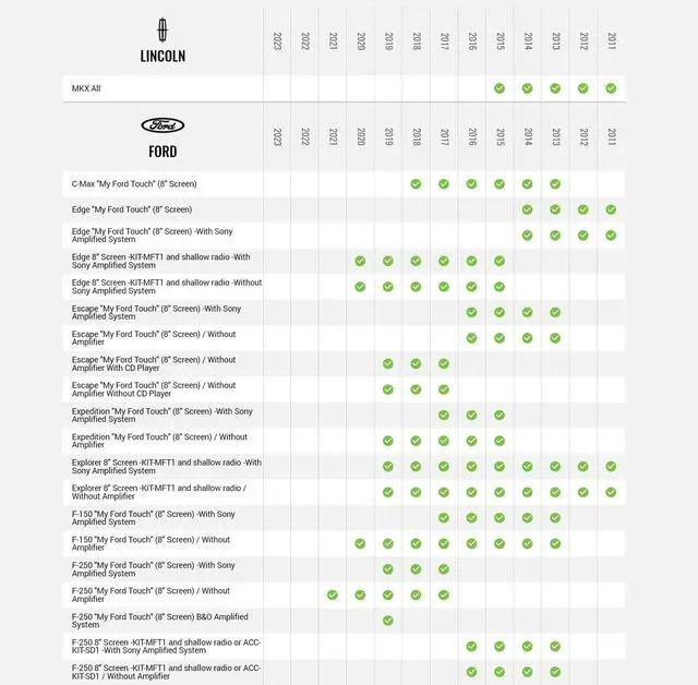 • Dash kit and T-harness solution for select Ford vehicles with the "My Ford Touch" Radio