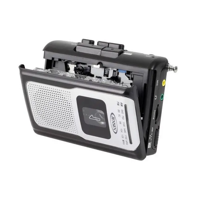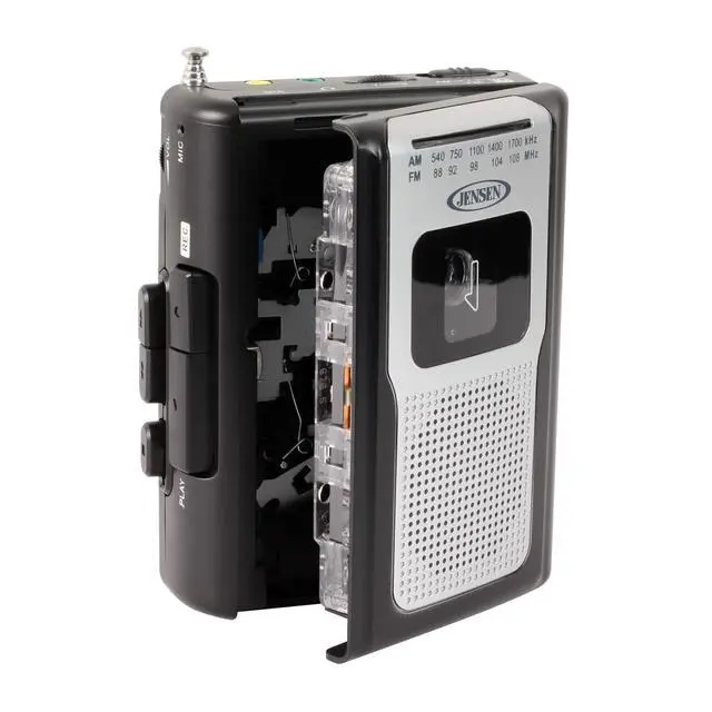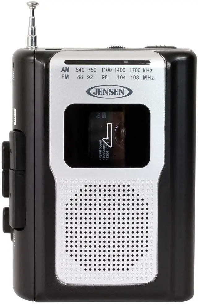 Jensen CR-100 Black Personal Cassette Player/Recorder is both portable and convenient. It also includes an AM/FM radio, so take it to the beach, the ball game, or anywhere else you want to listen to your favorite radio station, play old mix tapes, or audiobooks. Enjoy clear, static-free audio from the built-in speaker, and record from the radio or by using the built-in condenser microphone.