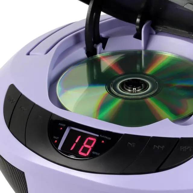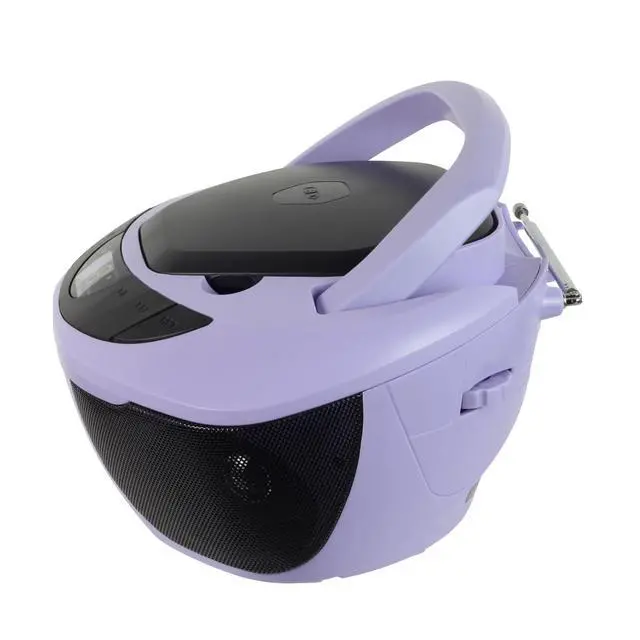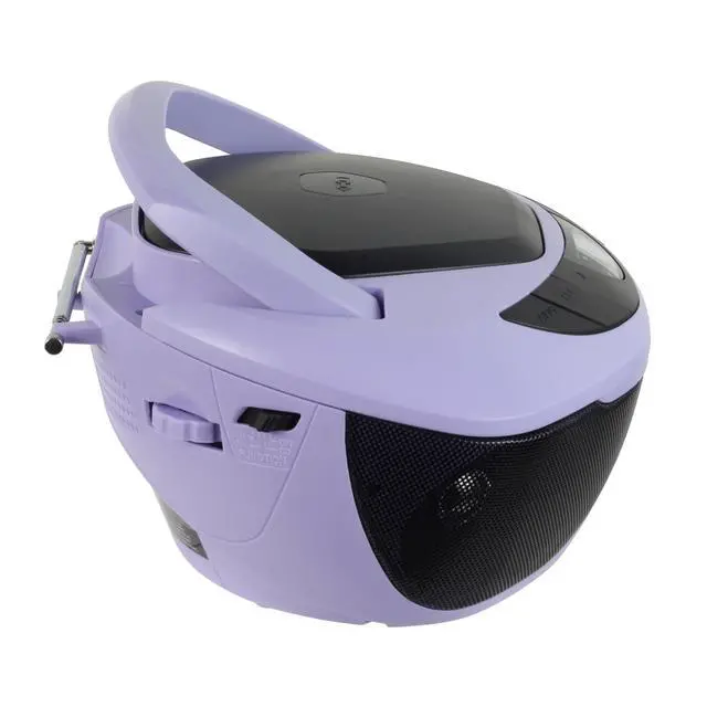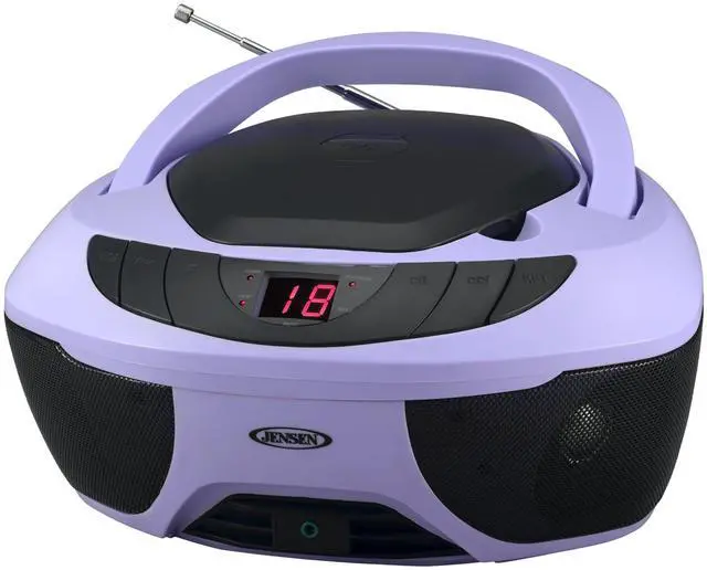 CD-475PL (Lavender Purple) Limited Edition Color. Jensen Boombox Portable Sport Stereo Boombox CD Player with AM/FM Radio and Aux Line-in & Headphone Jack (Red) Experience great sound with the JENSEN CD-475 portable CD music system. This device may look like a traditional boombox, but it is jam packed with features that will make listening to your favorite tunes easier and more enjoyable than ever before. Play music from a CD, AM/FM radio, or connect your iPod, MP3, or other digital audio players to the auxiliary input jack. When you power on your device, find all your favorite tracks, stations, and audio settings stored into the units programmable memory.