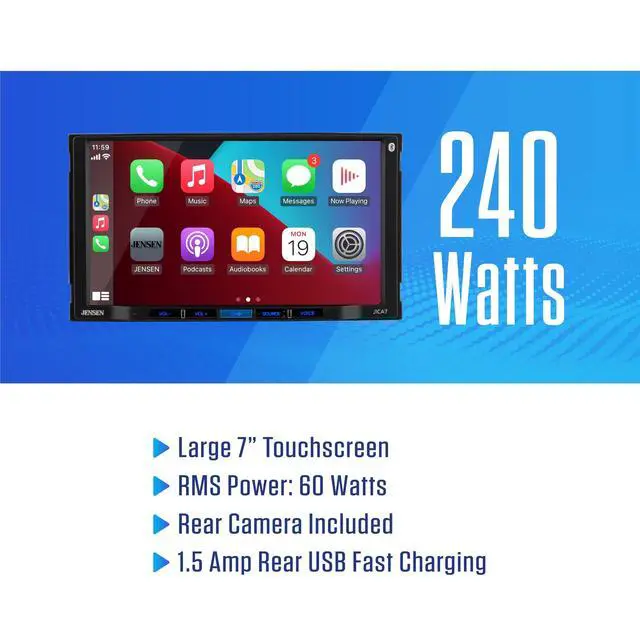 7 INCH LED HIGH RESOLUTION TOUCH SCREEN (1024 x 600) A large 7 inch LED high resolution touch screen display provides a comfortable viewing experience while keeping all your favorite content within fingers reach. ^^ APPLE CARPLAY CarPlay is the smarter and safer in-vehicle interface to operate your iPhone, and the experience is taken to another level when featured in the J1CA7 multimedia receiver. Simply talk to Siri or touch the receivers display and get directions from Apple Maps, make phone calls, listen to voicemail, send and receive texts, and listen to music all in a way that allows you to stay focused on the road.