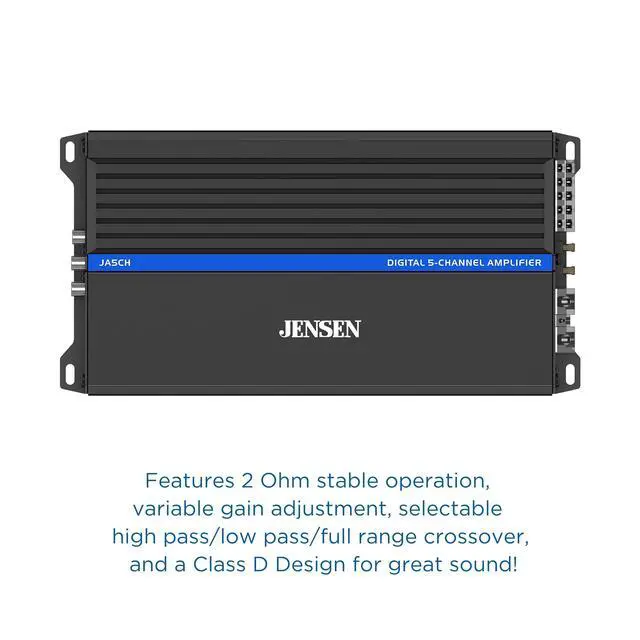 ^^ HIGH PASS & LOW PASS CROSSOVERS WITH BASS BOOST - When constructing your Jensen 5-channel amplifier, we added a variable high pass and low pass crossovers. ^^ SHORT CIRCUIT PROTECTION - Given the vast amounts of dynamic power in your 5-channel amplifier we built-in a thermal DC offset safety protection. ^^ ADDITIONAL FEATURES INCLUDE - Wired bass remote control, high level input (speaker wire), low level input (RCA), RCA pass-thru outputs and selectable high pass/low pass/full range crossovers.