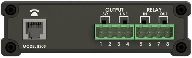 Connect the Algo 8305 Multi-Interface IP Paging Adapter to a telephone port (FXS) on a legacy communication system to bridge analog paging systems and IP environments. The 8305 has three key connection points: a telephone port that emulates an analog telephone, an 8 output that can connect to self-amplified speakers, and a line output. This makes it possible to connect legacy or IP devices to VoIP or UCaaS platforms for enhanced communication control.
