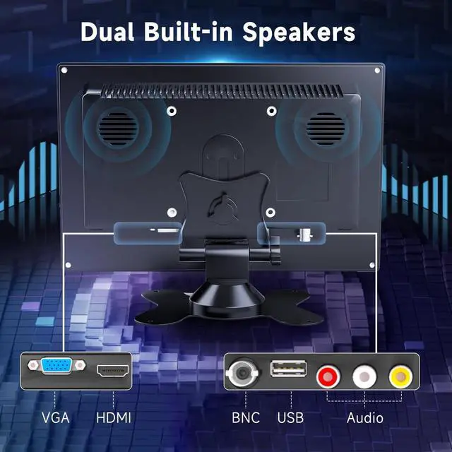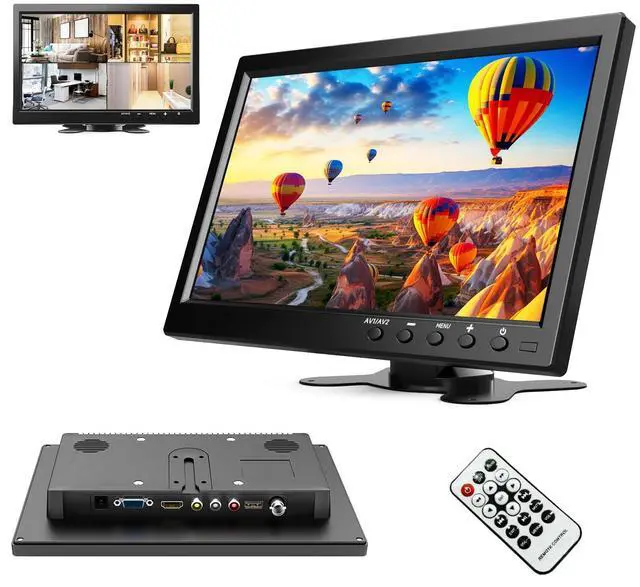 Easy to mount and pack: The stand is perfect allowing you to adjust the viewing angle and rotate the screen to meet all your needs. Portable to carry so that you can enjoy your favorite shows at home, on car or during travel. There are four holes on the back of the monitor, so that you can hang it on the wall as a TV. (screws not included).