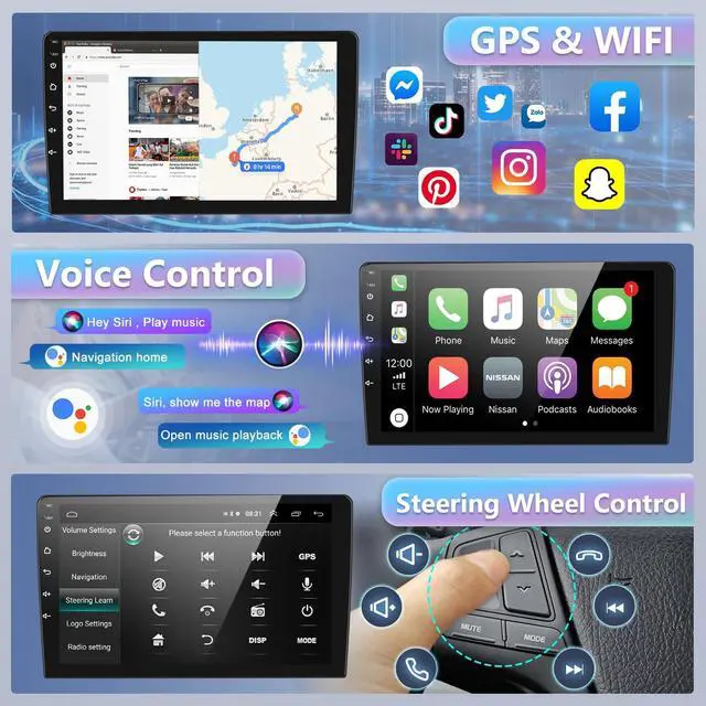 Bluetooth A2DP/hands-free/phone book: Bluetooth hands-free calling, Bluetooth music player, automatic loading of the phone book, you can make hands-free calls while driving, free your hands and avoid any danger. It also supports voice control function, and you can switch out "Siri" or "Goog-le Assistant" to help you complete instructions ^^ Steering Wheel Control & AHD Backup camera Use the steering wheel buttons to control the car audio, making the operation easier and driving safer. It also comes with a 1080P high-definition camera that supports night vision cameras, making the reversing image clearer and automatically switching to the rearview camera. Suitable for parking at night to ensure your driving safety. Suitable for most license plate frames.