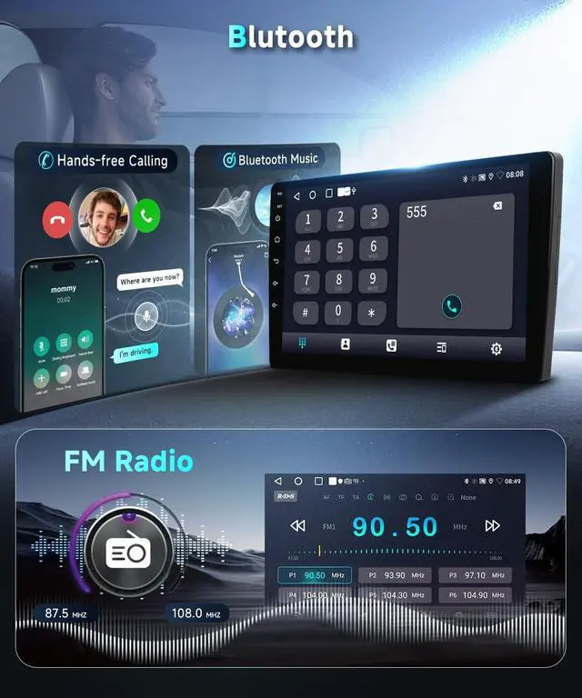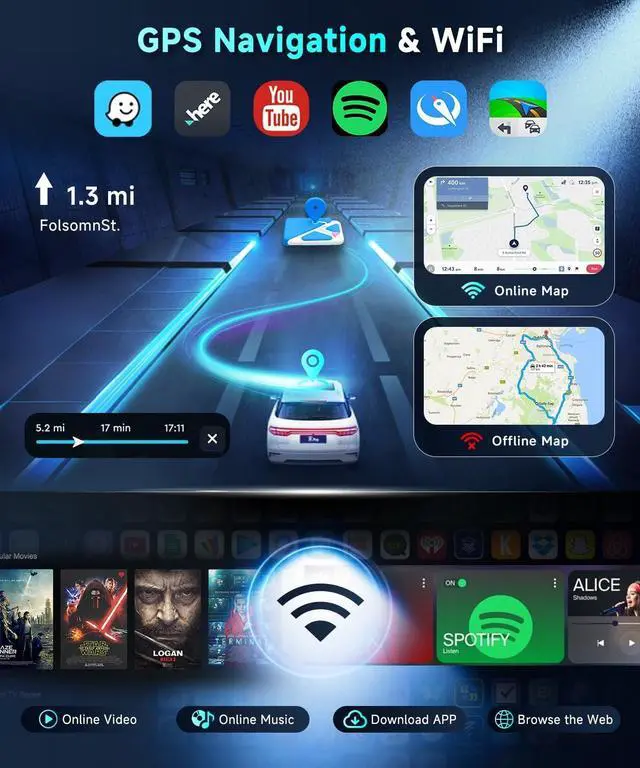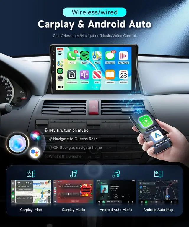 Wireless Carplay Android Auto: Wireless connection via Bluetooth to connect car stereo head unit support Carplay and Android Auto, you could use various mobile Phone Apps on the touch screen such as Waze, Spotify, Pandora etc. Voice assistants will help you voice control, for safe driving ^^ 2G+64G Android Car Stereo &