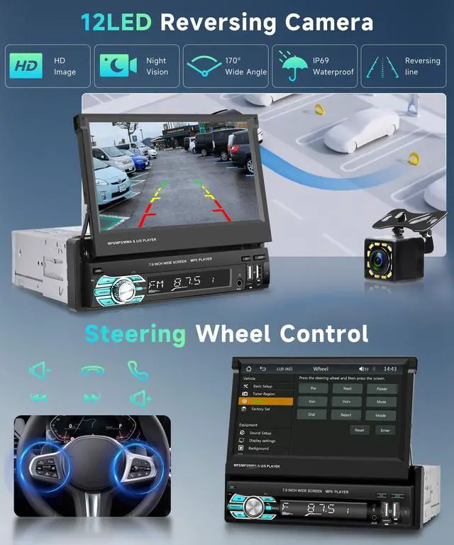 HD Rear View Camera: Our single din car audio receivers equipped with an HD camera. When in reverse, the 7-inch touch screen switches to show the backup camera view automatically. Make your daily reversing safer ^^ Vehicle Fit /