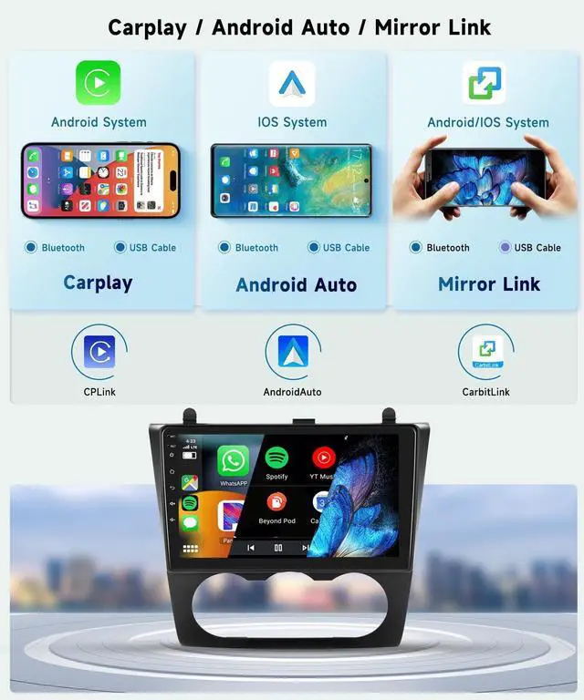 Android Auto: The car play radio for Nissan Altima supports wired and wireless Carplay and Android Auto, allowing easy access to your phone's apps, such as real-time online map, music, call, and enabling voice control, enhancing your driving safety and comfort ^^ 32-band