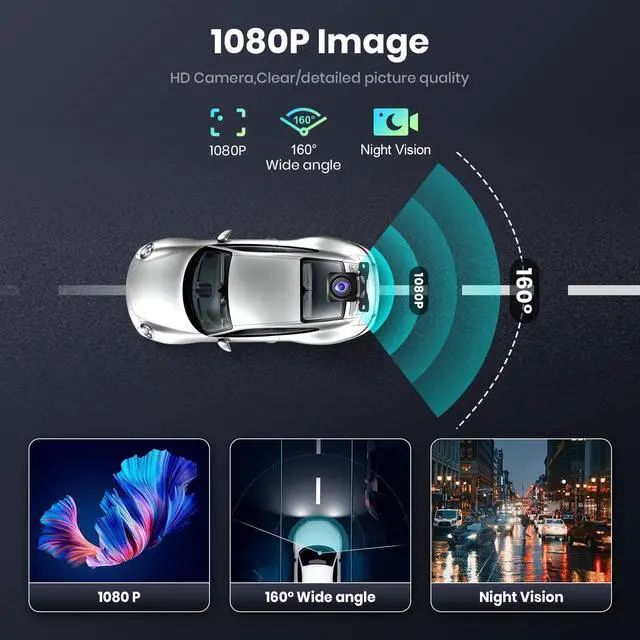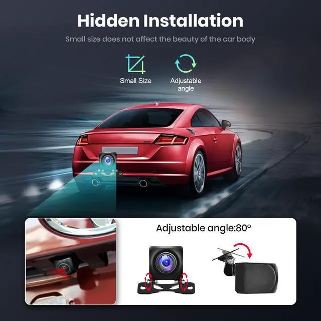 1080P Full Color HD Camera With a high resolution of 1080P images, the rear view camera delivers a clearer image for the driver. Bid farewell to annoying blurry, discolored screens and pictures, and embrace the most ideal road conditions. ^^ Hidden InstallationCompact in size and designed for discreet installation, this back up camera can be mounted to the rear, front, or side according to your preference. Suitable for a wide range of vehicles, including most 12V cars, SUVs, trucks, and commercial vehicles. ^^ 160 View Adjustable AngleThe reversing camera provides 160 horizontal viewing angle and supports 80 adjustable angle, you can adjust it according to your needs, which is more helpful for you to find obstacles and make you safer backup.
