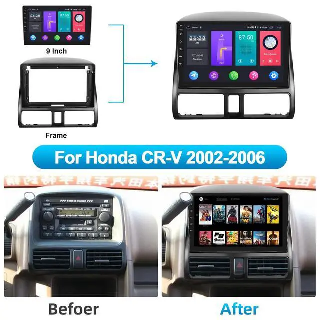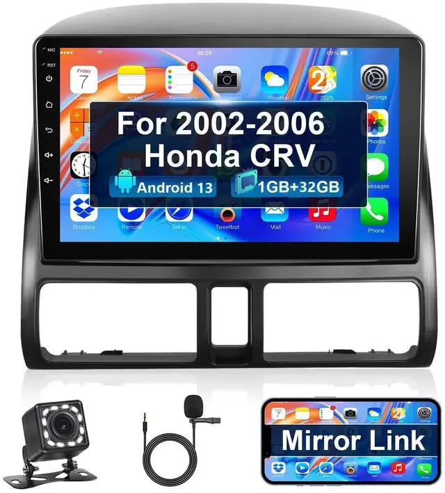 Suitable for Honda CRV 2002-2006 Suitable for Honda CRV 2002 2003 2004 2005 2006, using the latest Android 13.0 system, 1+32G memory, you can enjoy a smooth and responsive user experience. The 9-inch high-definition anti-blue light touch screen speaker brings you visual enjoyment and ultra-sensitive touch screen response.