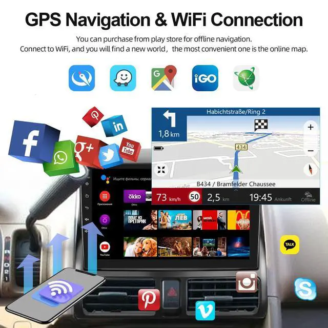 [Note: Please check the year, size and shape of your vehicle's center console before purchasing, we will process it within 24 hours. ] ^^ Built-in GPS Navigation and WiFiThe GPS navigation host is equipped with built-in GPS navigation and supports online and offline GPS navigation. You just download the offline maps you need and then you can go wherever you want. After connecting to WiFi, you can download apps from the Play Store, such as YouTube, Tiktok, Spotify, etc. ^^ Bluetooth 5.0 & Voice ControlBuilt-in