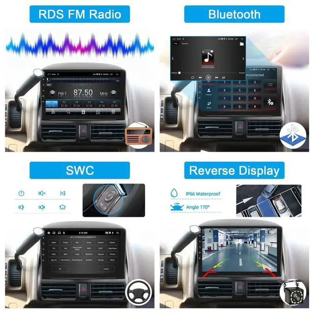 Bluetooth A2DP/hands-free/phone book: Bluetooth hands-free calling, Bluetooth music player, automatic loading of the phone book, you can make hands-free calls while driving, free your hands and avoid any danger. It also supports voice control function, and you can switch out "Siri" or "Google Assistant" to help you complete instructions. ^^ Mirror Link for Android/iOS --- Support Android/IOS phone mirror link (for Android 10.1 and below, for iOS 13.4 and below). Connecting the car radio to the phone via a USB cable can synchronize the video, images, and apps in the phone to the large screen of the honda cr-v car stereo. ^^ FM/RDS Radio & DSP 32EQ This radio can transmit online music to your car audio via FM, and enjoy your original car audio, high-end radio chip, powerful noise reduction and anti-interference capabilities, and clear channel search. It also has DSP tuning software, which can adjust frequency, AE, 36-band equalization, 10-band equalization, and sound type selection according to your preferences, giving you a better sound quality experience. ^^ Steering Wheel Control & AHD Backup camera Use the steering wheel buttons to control the car audio, making the operation easier and driving safer.