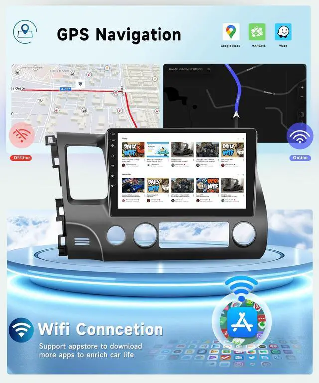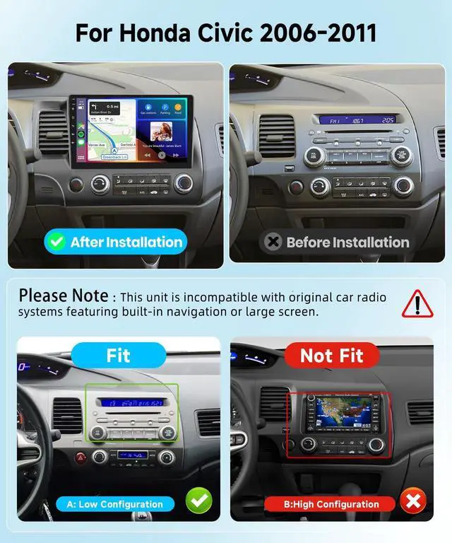 Applicable Models: This car stereo head unit fits for Honda Civic 2006 2007 2008 2009 2010