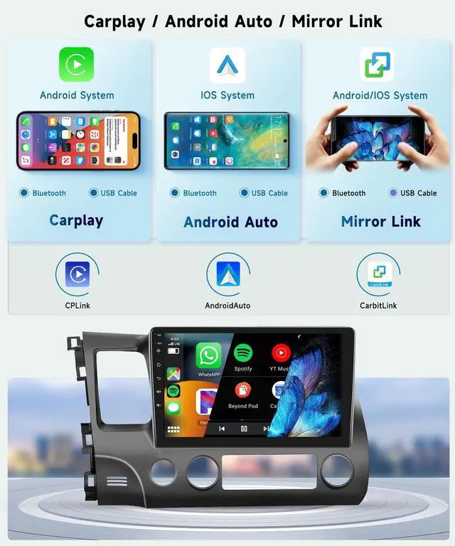 Wireless Carplay & Android Auto: The car play radio for Honda Civic supports wired and wireless Carplay and Android Auto, allowing easy access to your phone's apps, such as real-time online map, music, call, and enabling voice control, enhancing your driving safety and comfort ^^ 32-band