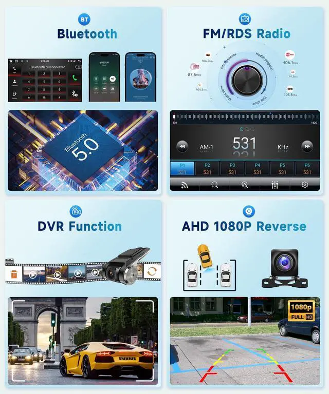 Car Stereo: The latest Android System, 8 Core CPU, 6G Ram and 128G Rom for more APPs installed, ensures smooth operation and faster response ^^