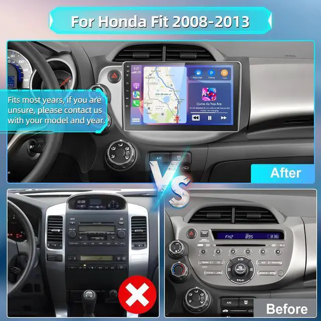 Compatible Models & Easy InstallThe easy-to-install car stereo system designed specifically for Honda Fit 2008-2013. With a user-friendly interface and straightforward installation process, you can easily replace your existing stereo system with our compatible unit! This for Honda Fit car radio stereo offers a seamless upgrade to your vehicles audio experience, providing enhanced sound quality and a range of features to elevate your driving experience! ^^ Android 13 System Head UnitWith 8-core, 4GB of running memory and 64GB of storage memory, youll have ample space for all your favorite music, videos, and apps.