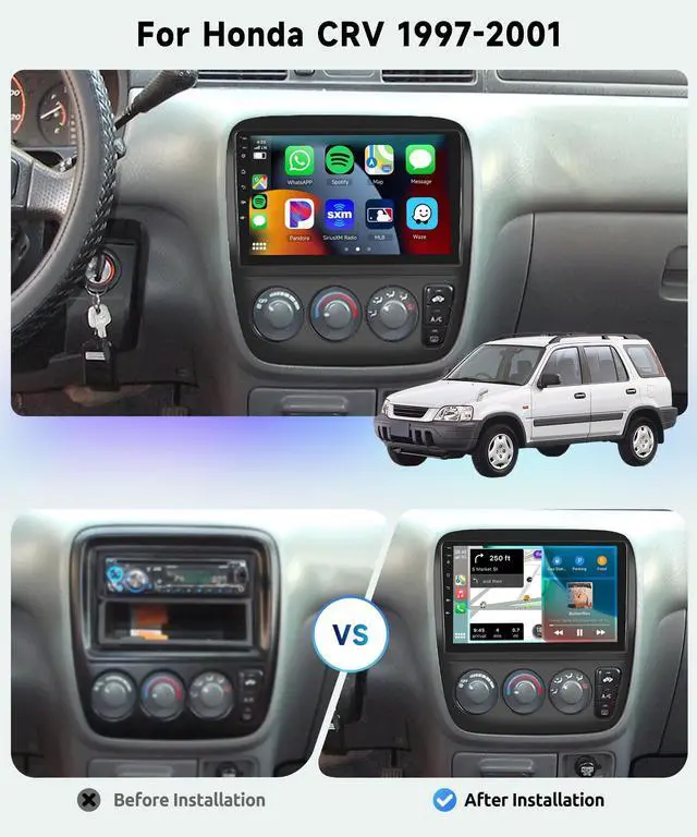 Car Stereo: 4-core 2+64GB android head unit, 9 car radio for Honda CRV 1997-2001, with multiple wallpaper and UI options, support mirror link, steering wheel control, subwoofer, drive recording, split screen, voice control, customize home page a with HD rear camera and multi-function USB ports ^^