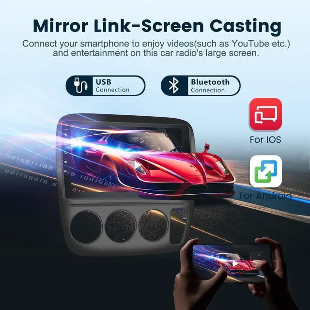 Bluetooth &DSP: The car radio support Bluetooth connection, not only realize Bluetooth hands-free callings also support music streaming. With DSP function, you can precisely adjust the audio to make the music clearer, more balanced, and lifelike. Tailor the sound effects to your personal preferences, even while in the car, ensuring a superior audio experience ^^