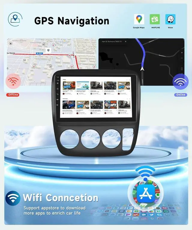 ^^ [Built-in WiFi & GPS] The car radio for Honda CRV has a built-in WiFi and GPSoffering offline navigation, ensuring reliable and accurate map data in areas without network coverage. When connected to WiFi, you can review the real-time map and download app directly on this touch screen. ^^ [Bluetooth 5.0 &DSP] The car radio support Bluetooth connection, not only realize Bluetooth hands-free callings also support music streaming. With DSP function, you can precisely adjust the audio to make the music clearer, more balanced, and lifelike. Tailor the sound effects to your personal preferences, even while in the car, ensuring a high-quality audio experience.