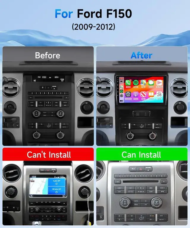 Applicable Car Models: Lastest Android system, 9 inch 2.5D 1080P HD IPS touch screen, 2G RAM 64G ROM, offline/online GPS navigation, Wifi connection, RDS/FM radio, two USB, EQ adjustable, with waterproof HD rear view camera, support Android/IOS smartphone mirror link, steering wheel control. This double din radio is perfectly suitable for Ford F150 2009 2010 2011 2012 2013 2014 stereo radio, and no need to purchase additional accessories ^^ 3. GPS/ WiFi/ Hands-Free Calling/ FM Radio: Our car play radio built-in GPS receiver and WiFi connectivity, enabling both online and offline navigation, internet browsing, and access to various applications such as waze, YouTube, TikTok, Spotify, and more. Stay connected while driving with incoming and outgoing calls, address book sync, and mobile phone music playback. Additionally, transmit music to your car stereo through FM and enjoy your favorite radio stations ^^ 4.2G 64G