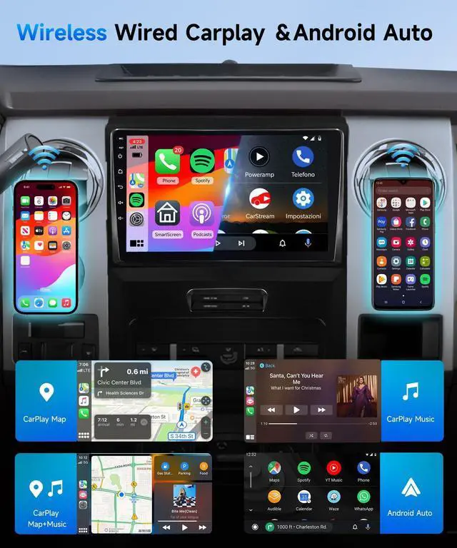 Carplay/ Android Auto/ MirrorLink: Wireless CarPlay and Android Auto offer a familiar, user-friendly interface for seamless integration between your phone and car's infotainment system. Make it simple to navigate through apps, music, and messages without distracting you from the road. Additionally, this for ford focus 2012 car radio supports IOS/Android mirror link, allowing you to mirror your phone's screen on the radio's display and use your phone's apps, music, videos, and more. ^^ 2. Stereo Configuration and