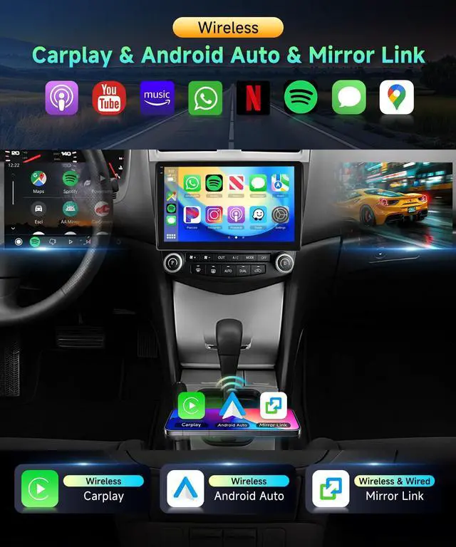 HD touchscreen stands out: crisper, brighter, and more vivid than regular displays, plus it offers split-screen support ^^ In-Cell TouchscreenThe car radio for Honda Accord is equipped with an all-new upgraded In-Cell full touchscreen. By integrating touch sensors directly into the panel, making it 10-20% thinner and lighter. Its light transmittance exceeds 95% (vs. 90-92% for traditional screens), with brighter visuals and 20-30% faster touch response thanks to a shorter signal path ^^ Wireless CarPlay and Android AutoThis Android car radio for Honda Accord supports wireless CarPlay and Android Autono USB required. Easily access Maps, Music, and calls directly from your car. Sync apps such as GPS Maps, Spotify, and iTunes to keep your data and content flowing smoothly on every drive ^^ AHD 1080P Backup CameraThis backup camera is equipped with a 170 wide-angle HD lensfeaturing a fisheye design and large apertureto deliver clear, expansive views. It supports AHD signal output for 1080P display and has IP69 waterproof protection, making it an ideal upgrade for safer reversing ^^ More FeaturesThis car audio system with bluetooth for hands-free calls & music, plus FM/RDS radio, steering wheel control, GPS navigation, online/offline maps, WiFi, wired/wireless mirror link, dual USB inputs, DSP EQ Settings and support for file manager/dash cam