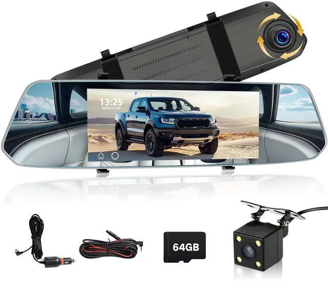 • Super Night Vision & Six Display ModesMirror Dash Cam Front and Rear Camera equipped with superior sensor, the dash cam captures sharp videos with enhanced details at extreme low light conditions. HDR wide d