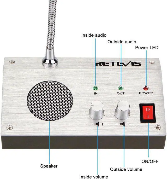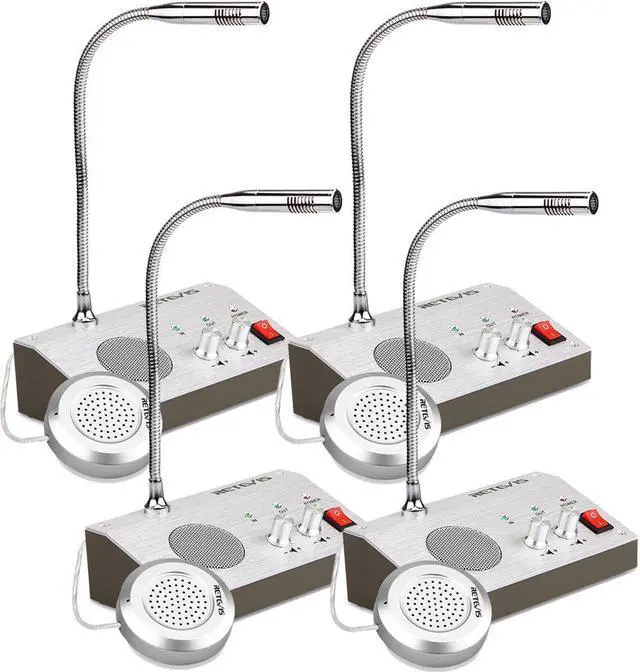 What's in box: 4 x Retevis RT-9908 counter interphone 4 x External speaker 4 x